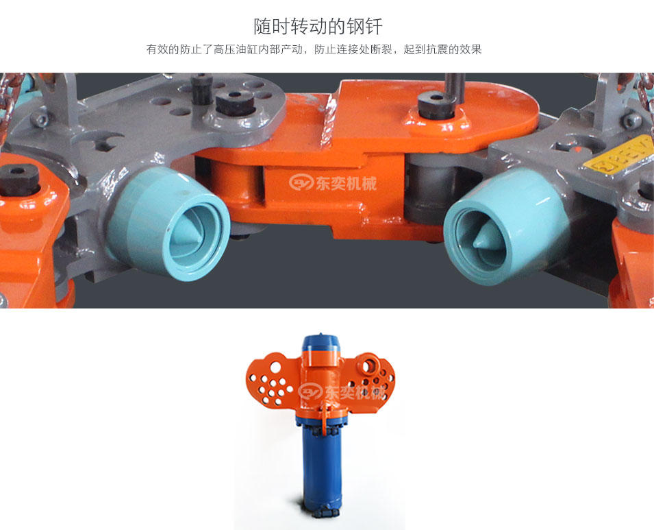 锥形顶端设计避免了泥土会堆积在导向法兰内,造成钢钎卡死、偏向和易断裂等问题。随时转动的钢钎,有效地防止了高压油缸内部产生震动,防止连接处断裂,起到抗震的效果。